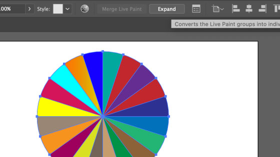 The result of the ungroup being a solid circle and a set of lines (not slices). To turn them into slices, use the live paint tool to fill all the slices with the same color or different colors and then move the slices to different positions. Once you have finished, click the expand button at the top of the screen